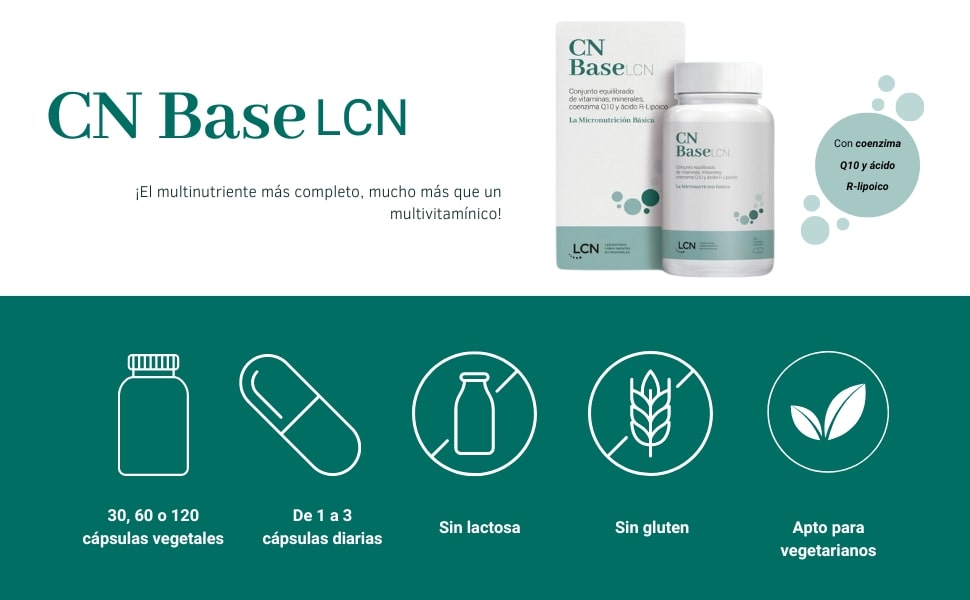 CN Base LCN 120 cápsulas es un suplemento alimenticio diseñado para complementar la dieta diaria. Contiene una mezcla equilibrada de vitaminas, minerales y otros nutrientes esenciales que contribuyen al bienestar general del organismo. Este producto se caracteriza por su formulación en formas activas y biodisponibles, lo que facilita una mejor absorción. Su uso regular puede ayudar a reducir la fatiga y a mantener el funcionamiento normal del sistema inmunitario. Composición y características de CN Base LCN 120 cápsulas Este suplemento alimenticio destaca por una cuidadosa formulación que combina una variedad de vitaminas y minerales, así como otros nutrientes esenciales. A continuación se detallan sus componentes y características más relevantes. Vitaminas…